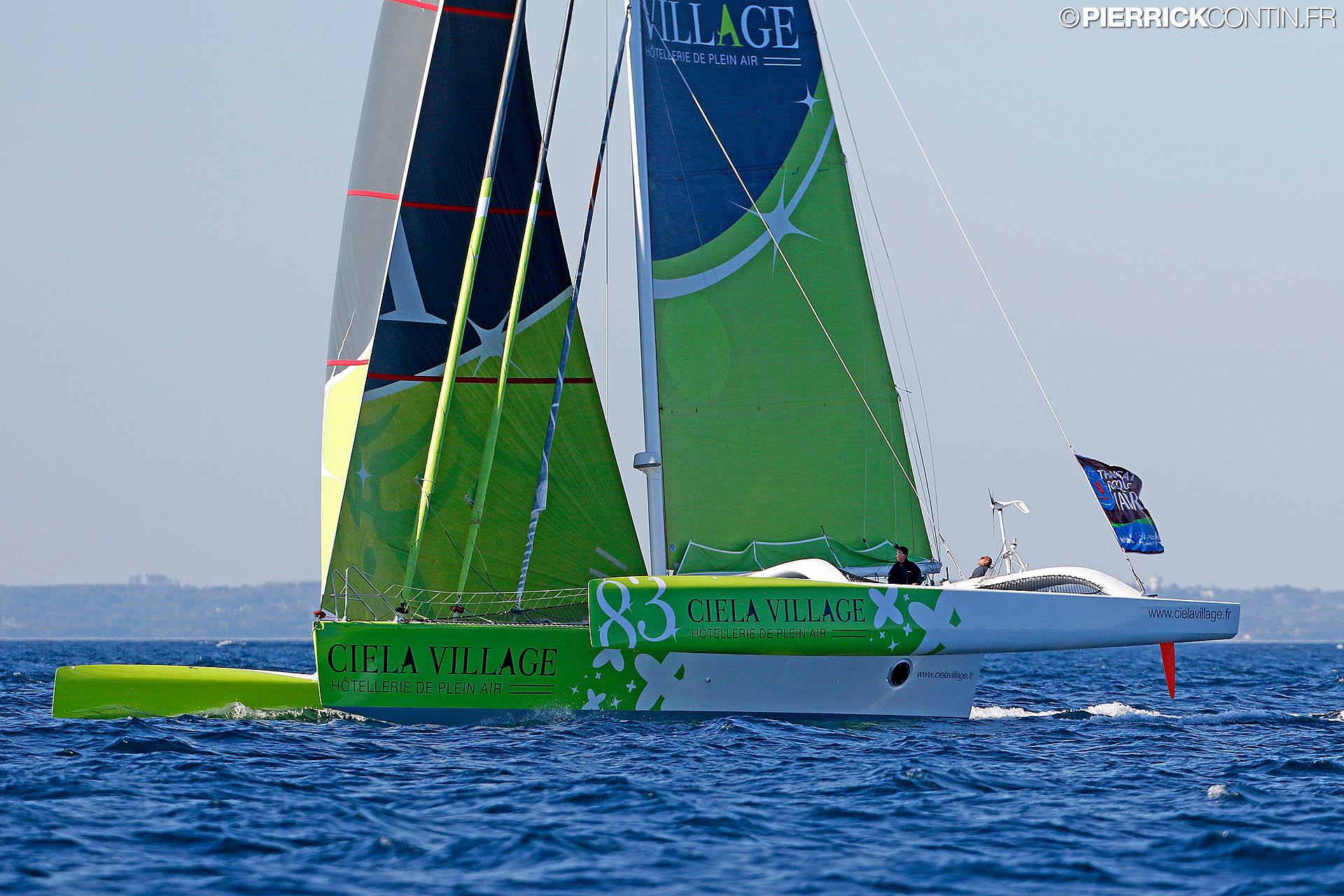 Launched in the colours of Crêpes Whaou II in 2005, this legendary boat propelled the MULTI50 class to centre stage in the hands of Franck Yves Escoffier. Renamed Maitre Jacques in 2010, she underwent a thorough overhaul in 2014 to accommodate a more powerful bow section designed by VPLP. She was bought by Thierry Bouchard in 2015 and has since been renamed Ciela Village. She’ll be taking the start of the Transat Jacques Vabre 2015 for the first time in her new colours.
